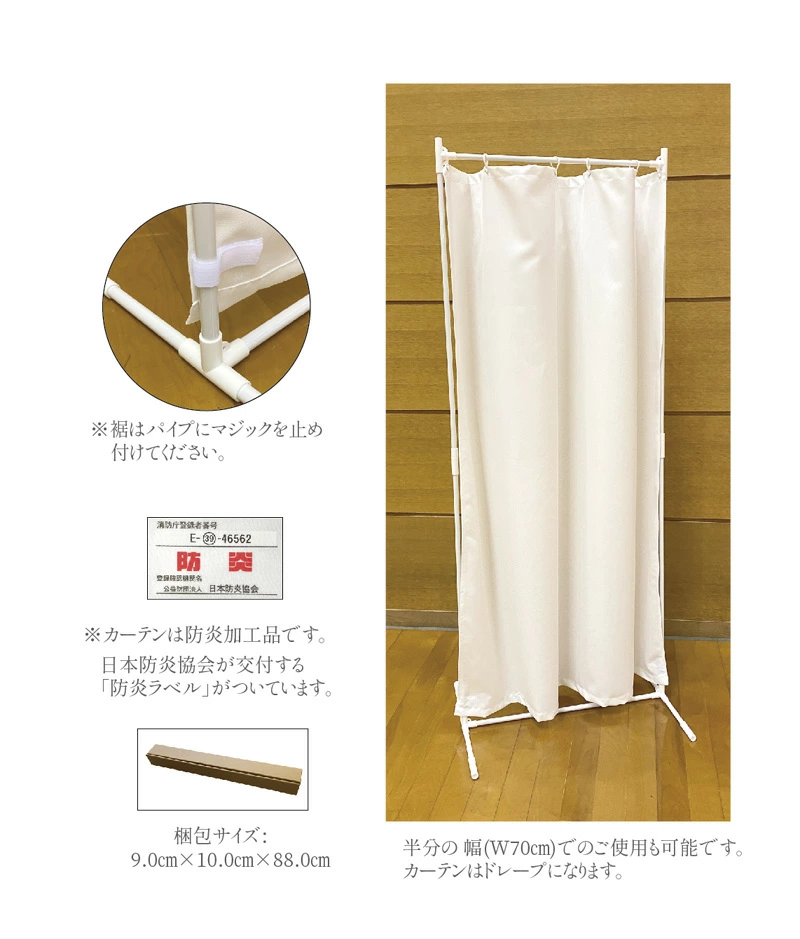 軽量・コンパクトで簡単組み立てできる簡易衝立です。 |